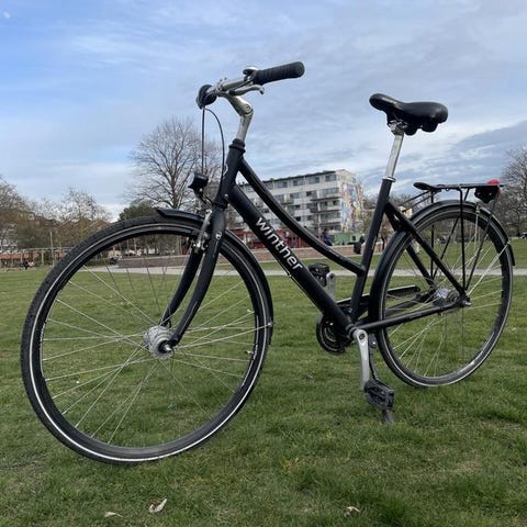 Stadscykel med elegant och tidlös design. Tre navväxlar från Shimano, enkelt och underhållsfritt. Effektiv pedalbroms bak, V-broms fram.