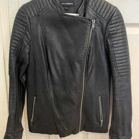 Bild 1,2,3. Elegant kavaj av mjukt kalvskinn, svart,4 fickor och bälte, använt endast en gång