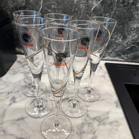 Mycket fint skick, etiketterna sitter kvar och är oslitna. Perfekt för samlare eller som elegant glas till hemmet.