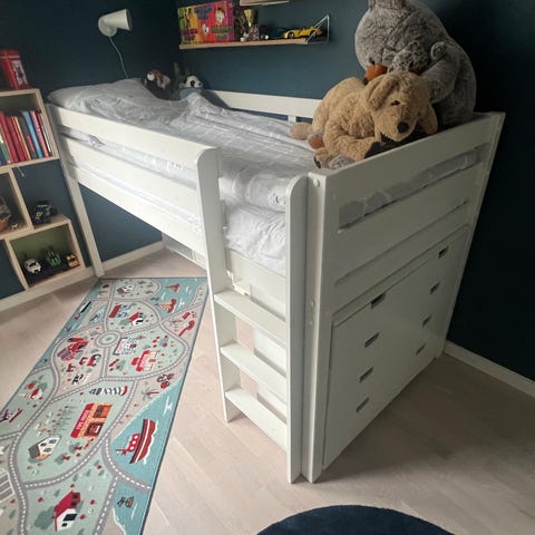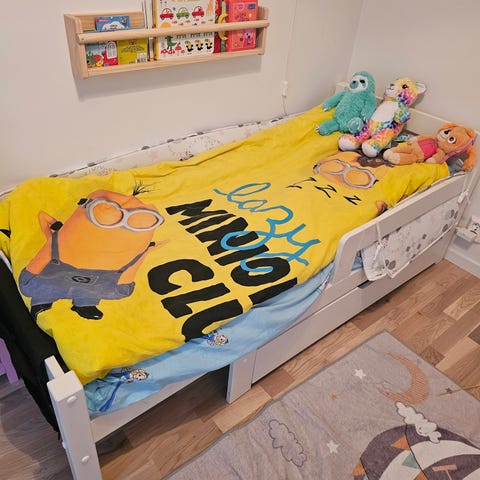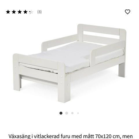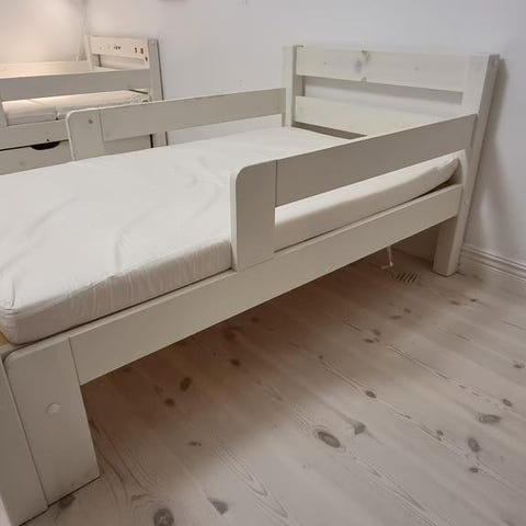 Växasäng Nils från Mio (nuvarande modell heter Nova). 70x120 cm, men kan förlängas med 50 cm extra. Madrass ingår.