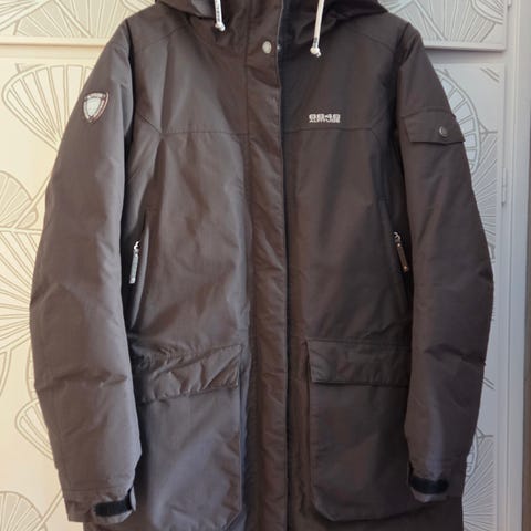 Dunjacka med luva av märket Champion i storlek herr S. Köpte förra året och haft endast en vinter. Nu har sonen växt från den. Mycket fin skick, inget fel. Nästan som ny.