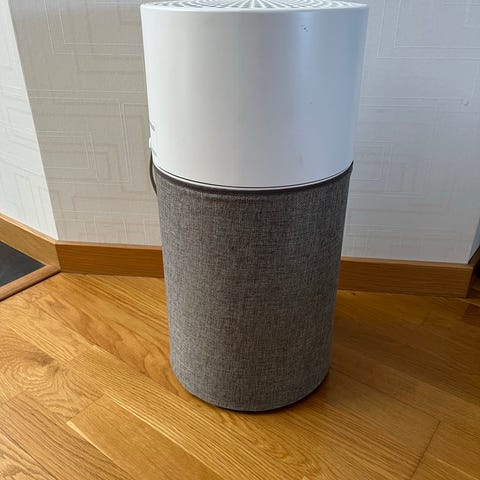 Luftrenare BlueAir AV501 på hjul. Höjd 65 cm, bredd 50 cm, djup 34 cm. Filterset med tre filter.