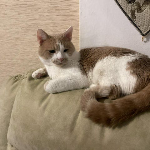 Den vita katten är ett år gammal. Den gula katten är fyra år gammal. Den grå honkatten är fyra år gammal.