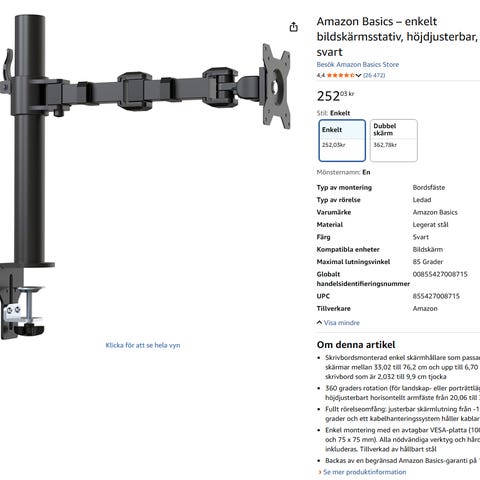 Obs: Knappen för att visa hela beskrivningen har bara en visuell effekt.