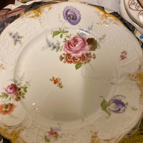 Fina och gamla desserttallrikar.