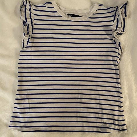 Blå, ribbad crop top med v-ringning och dragsko i sidorna. Storlek M