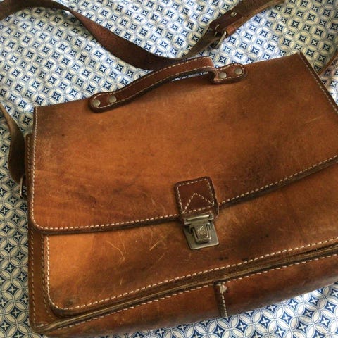 Beautiful Belsac bag, crafted with genuine Italian-sourced cowhide leather and warm gold hardware. Spacious bag (space for a 13 inch laptop) with front zip compartment and detachable shoulder strap.