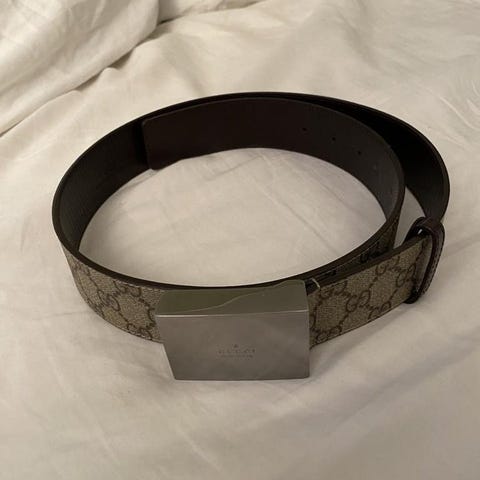 Gucci-bälte i bra skick. Jag har gjort två extra hål för att den ska passa därav säljer jag den billigare