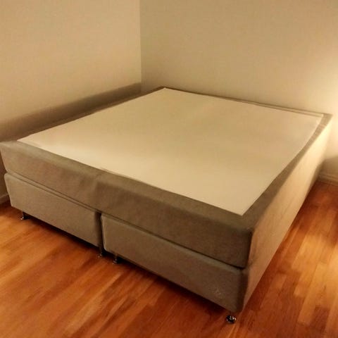 Sängen har stilrena svarta träben samt tillhörande sänggavel som man sätter på sängen. Den är i bra skick, men den saknar bäddmadrass (kan köpas separat). Som med de flesta begagnade sängar finns det vissa fläckar på sängen (se bild 4 och 5), men den är fullt funktionell och erbjuder ett bra stöd för en god natts sömn.