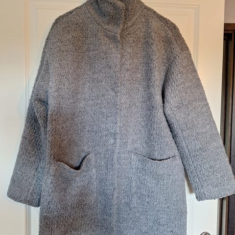 En grå ullkappa från Gina Tricot säljes för 100 kr.