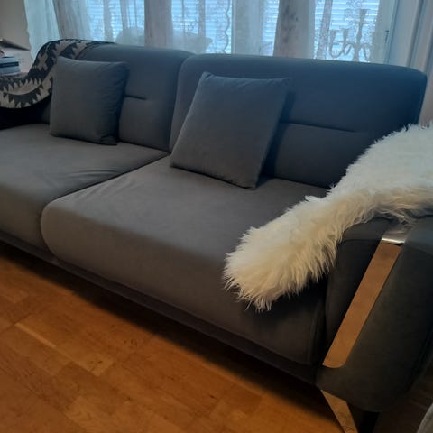 Bäddsoffa i ljusgrå sammet, 275x140x70 cm.
