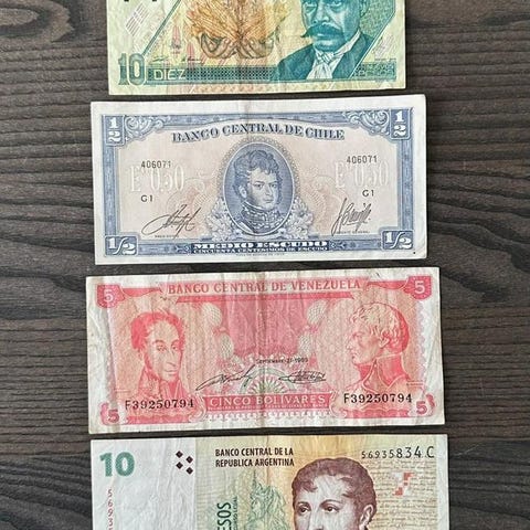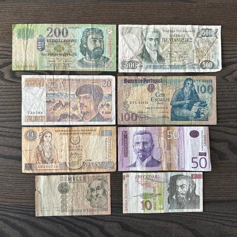 Samling av 8 utländska sedlar