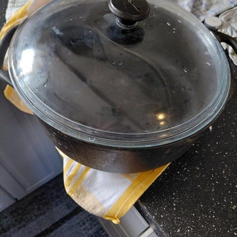 Alla grytor har lock och det finns emaljskador mer eller mindre på vissa av dom men många i mycket gott skick.
