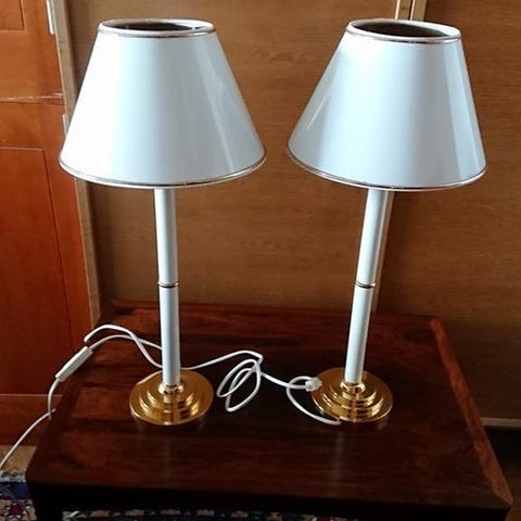 Ett par bordslampor, Luxus, Vittsjö. Svarvad Furustomme. För en ljuspunkt vardera. En fogspricka vardera. Brännmärkta Uno Kristiansson Sweden. Höjd: ca 42 cm Finns att hämta på Hisingen. Maila eller skicka meddelande vid intresse.
