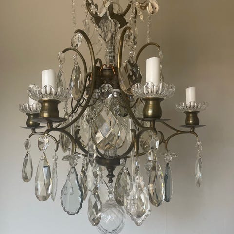 Vintage petit taklampa med Kristallprismor