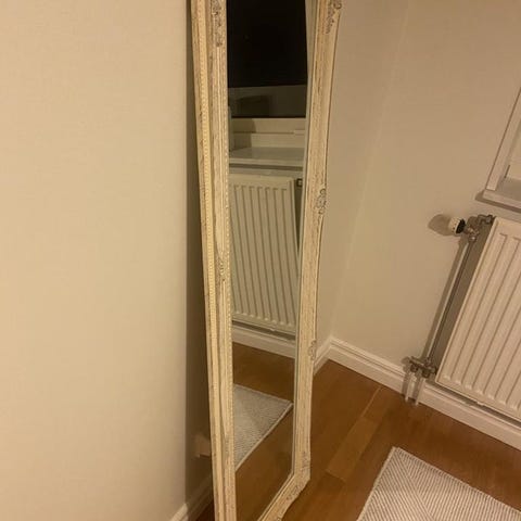 Säljer två stilrena speglar med klassiska ramar, båda i gott skick och perfekta för hall, sovrum eller vardagsrum. Inga skador i glaset, bara normalt bruk från att ha stått mot vägg.