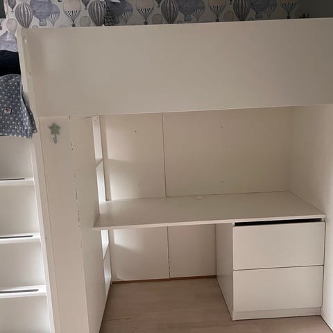 Hej! Jag köpte loftsängen med inbyggd garderob, bra förvaring och skrivbord för några år sedan för 7000kr. Jag säljer nu den för 1000kr. Den som vill köpa står själv för nedmonteringen av den.