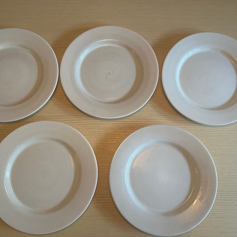 5 stycken Mateus basic tallrikar. En av dem har sprickor (se bild) men bara estetiskt inget som påverkar tallriken annars.