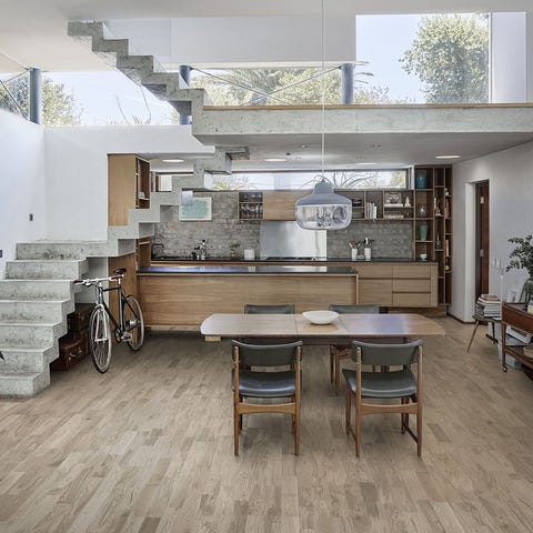 ” Hemligheten bakom Super Ek hittar du på toppen av golvet. Där finns det ett tunt lager noggrant utvalt trä som ser till att golvet får en naturlig yta med ådror och strukturer. Det översta träskiktet har behandlats med inte mindre än åtta lager ultra-mattlack titanlack. Under det översta lagret finns det en hård kärna av så kallad High Density Fiberboard (HDF). Detta innebär att golvet är extremt motståndskraftigt mot alla former av stötar och slag. Lacken och kärnan har producerats utan lösningsmedel och resultatet är en hälsosammare inomhusmiljö. Super Ek Cork varianten har dessutom fått ett underlag av kork som dämpar stegljud och bidrar till extra komfort i hemmet. Super Ek passar även perfekt till bostäder med golvvärme.”