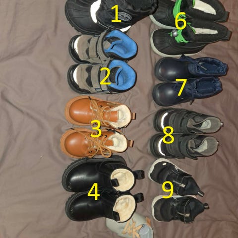 Ett urval av vinterskor för pojkar och flickor