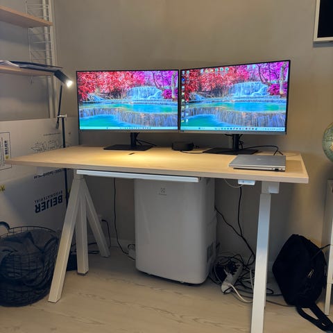 Säljer vårt höj- och sänkbara skrivbord från String i ek. Mått 140 x 78 cm. Sparsamt använt, säljes pga flytt. Nypris strax över 15 000 enligt Strings hemsida.