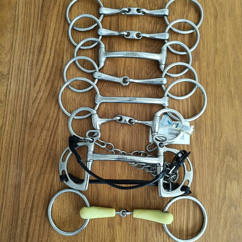 A Globusstl 14,5 Nytt 120kr B Globus stl 14,0 90kr C stl 12,0 80kr D stl 12,0 80kr E stl 13,0 80kr F stl 14,0 80kr G 12,5H Stång stl14,5 100kr I Pelham stl 13,5 80kr J Kandar stång stl15,0 150kr K kör bett stl 14,5 150kr L stl 13,5 100kr M stl 12,0 80kr N stl 13,5 80kr O stl 12,0 80kr P stl 13.5 80kr Q stl 13,5 100kr R stl 12,5 80kr S stl 14,0 100kr T stl12,5 80kr V stl 15,0 100kr Ä Lock funktion som gör att bettet ej kan vi kas ihop, det gör att det inte kan trycka hästen i gommen. Ö Kandar stång stl 15,5 Bridong stl 14,0 Säljes endast ihop( Nypris på stången var 3000kr ) pris400kr Å Fagedeegs bett stl13,5 300kr W stl12,5 80kr Frakt för 1-2 bett är 55kr OBS ENDAST telefon eller sms kontakt på nr 0702489340