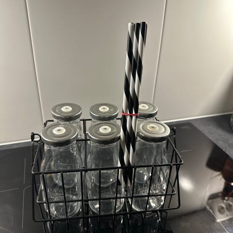 2st korgar med 12st to-go flaskor (med lock och sugrör).