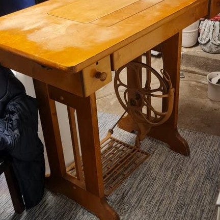 En klassisk vacker, antik Singer symaskin med tillhörande bord. Perfekt för den som uppskattar vintage och hantverk. Ej funktionstestad. Hämtas på plats.