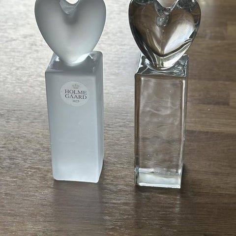 Två söta ljuslyktor i glas från danska Holmegaard vid namn Hidden hearts designade av Viviana Torun Bulow-Hube. Höjd ca: 9 cm Lyktorna är hela men har några skav/mindre repor. Hör av dig om du vill ha fler bilder eller om du har frågor. Jag packar väl men ansvarar inte för transportörens slarv. Se gärna mina andra annonser och hör av dig innan köp om du vill köpa flera.