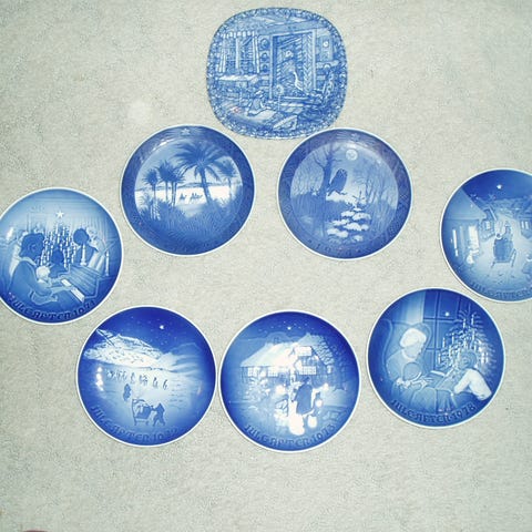 Ett av de vackraste mönstren på en service som finns enligt mig. Två små delar från Bing och Gröndals serie Rosen - en söt äggkopp och ett litet fat målade i blått och vitt med julroser. Fint skick. Jag packar väl men ansvarar inte för transportörens slarv. Se gärna mina övriga annonser och hör av dig innan köp om du vill köpa flera.