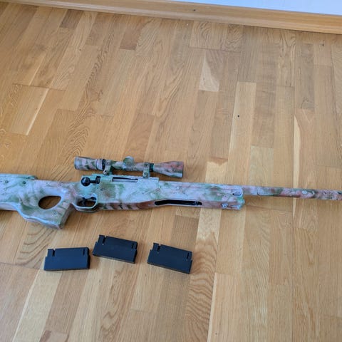 Airsoft Gun 308 sniper i orginalkartong inkl kikarsikte, kulor och shootingtarget.