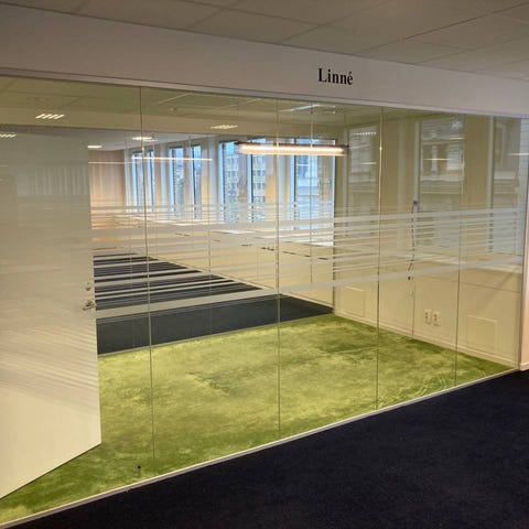 *Efter demontage upptäckte vi färgskillnader på glasens kanter (se sista bild). Glasen har tidigare suttit i samma utrymmen, alltså bredvid varandra dock inte till samma kontor.
