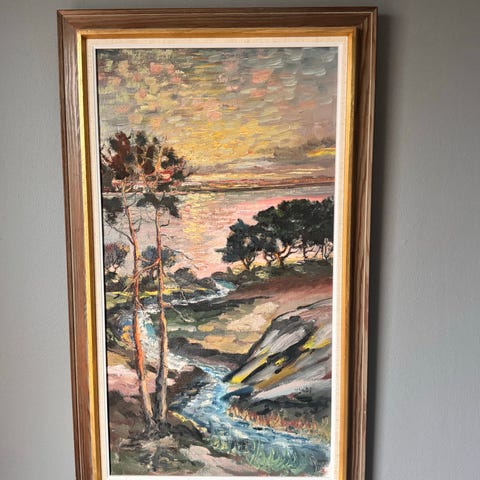 Tavla Olle Carlsson oljemålning tavelvägg guldram i trä