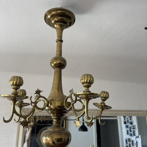 Klassisk takkrona i mässing med skärmar
