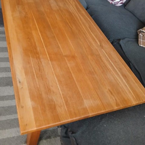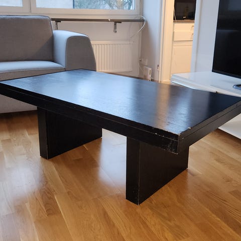 Fint soffbord i massivt ek med glasskiva, tillverkad av Jörgen Josefsson Möbeltjänst Lidhult. Bordet är använt utan synliga skador. Storlek 70x70 cm och höjd 46 cm. Gratis transport inom 10 km från Farsta, längre transport efter överenskommelse.