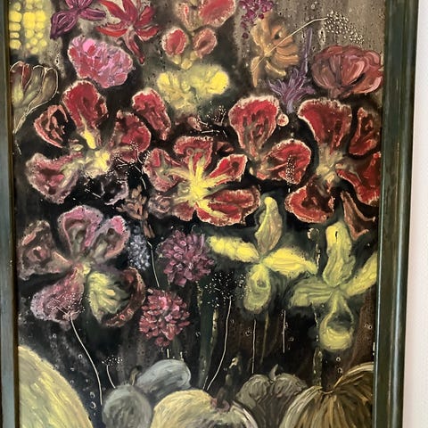 Jag säljer en vacker oljemålning föreställande bloms