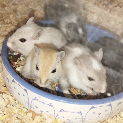När ni köper en hamster av mig så får ni med ett häfte med några papper om allting från skötsel till vad dom tycker om att äta och en påse med övergångsfoder. Olika arter :Vintervit, Campbells & Roborovski