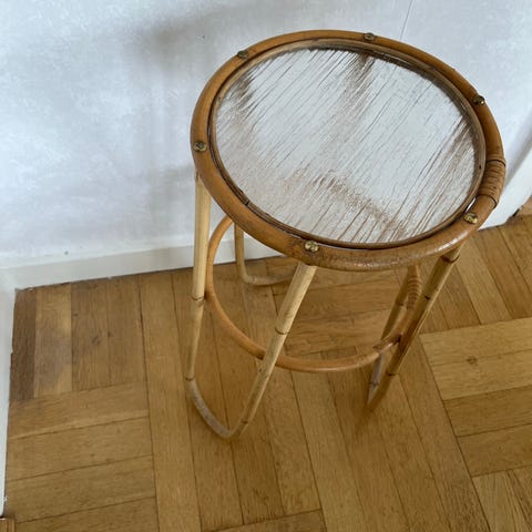 2st piedestaler i glas och rotting. 40cm höga.