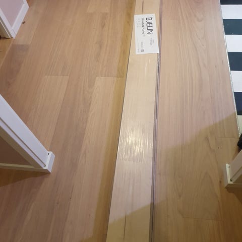 På bilden så ligger tröskel mot ett Bjelin golv som heter Mossby 2.0.