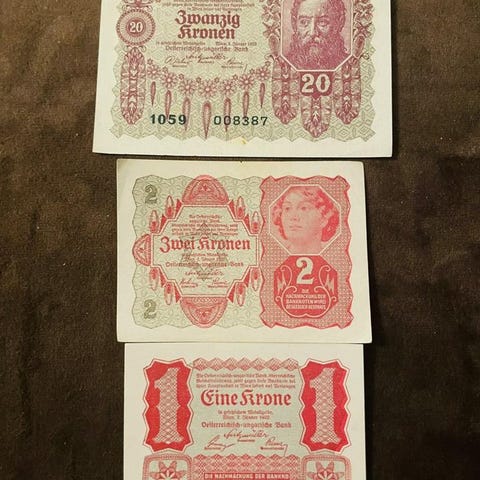 Samling av svenska sedlar från olika årtal. Inkluderar en 100 kronors sedel från 1961 med serienummer N 320809, en 50 kronors sedel från 1960 med serienummer C 033826, en 10 kronors sedel från 1940 med serienummer W 697446, och en 5 kronors sedel från 1952 med serienummer X 518344.
