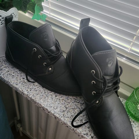 Svarta. Nästan som nya. Använda ett fåtal gånger. Fodrade varma sköna skor
