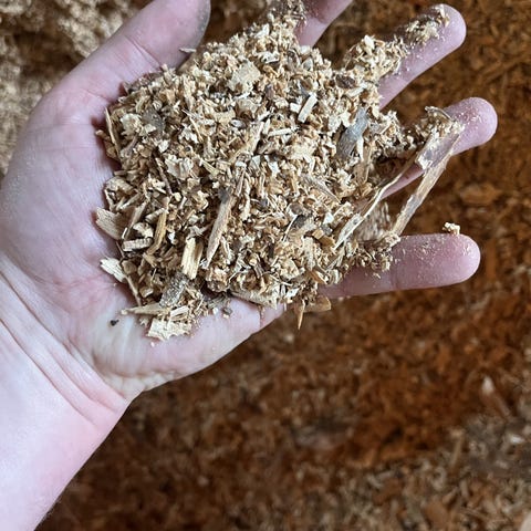 Nu kan du köpa fint Träflis-Trädgårdsflis att lägga i gångar under träd och buskar mm.