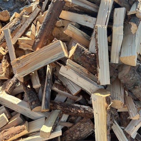 60 liters säckar med torr eldningsklar kaminved.