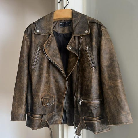 blå kroppad skinnjacka