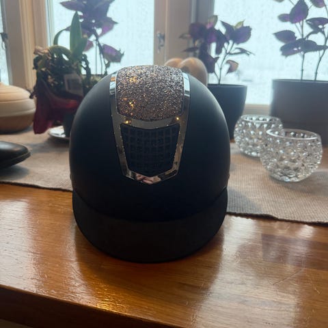 Miss sheild 2.0 shadowmatt med svart krom. Använd fåtal ggr och aldrig ramlat eller slagit i hjälmen. Nyskick och inga repor vad jag kan se. Nypris 4500 kr. Strl M 55-58 cm