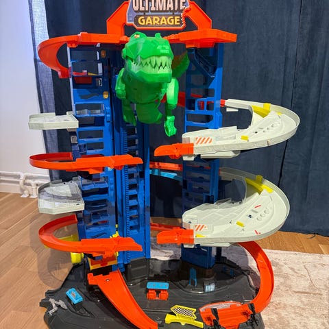 Två lekset Hotwheel: Hot Wheels triceratops lekset avfyrare fordon gigantisk dinosauriefiende och Hot Wheels Cobra Track samt förlängnming av banan (track bilder) med tillbehör.