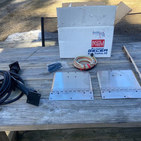 OBS kolvar ingår ej och måste kompletteras med 16st M8 skruv för montering av trimplanen mot akterspegeln.