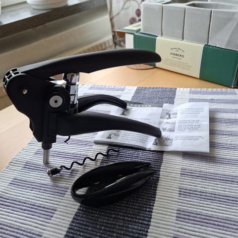 Vinöppnare/korkskruv med hävstång inkl folieskärare och extra skruv.