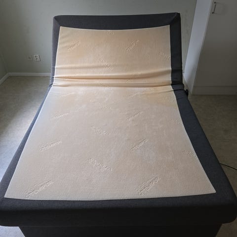 Du kan lägga den direkt på golvet om du vill sova mer “japanskt”, eller på en ribbädd – TEMPUR rekommenderar IKEA:s ribbädd. Ingen bäddmadrass behövs, det här är en komplett bädd som fungerar själv.