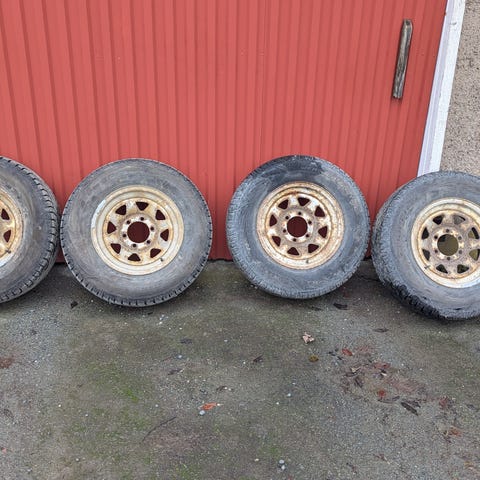 Säljer en uppsättning nya vinterdäck med mått 235/75/15. Fälgarna passar en Chevrolet Pickup. Däcken är oanvända.